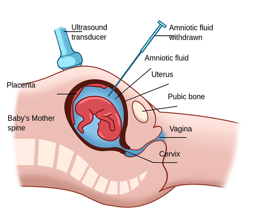 This test is performed between week 15 and week 20 of pregnancy. Although not all women decide to have an amniocentesis, it is routinely performed on women who are at risk for genetic disorders or are over age 35. During the procedure a small sample of the amniotic fluid surrounding the fetus is obtained. The fluid is used to help identify chromosomal and genetic disorders and certain birth defects. When done during the third trimester, this procedure also can assess the maturity of your baby's lungs.